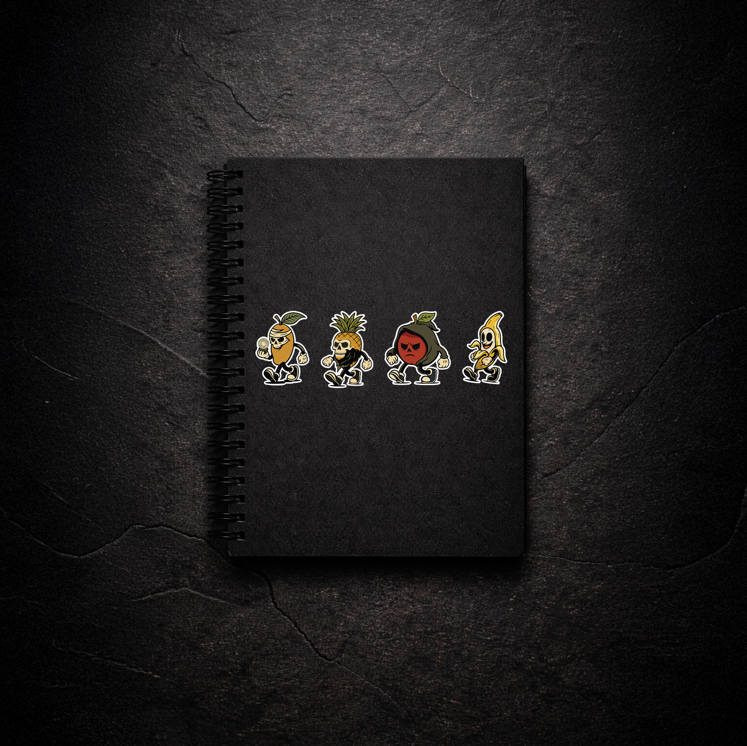 This kiss-cut sticker pack includes the full Morbies lineup: bananas, mangos, apples, and pineapples, each carved to shape and ready to haunt laptops, notebooks, bottles, and any indoor surface that could use a little chaos.